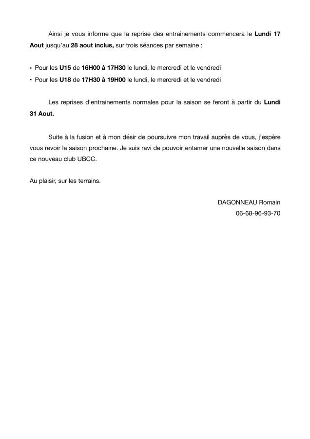 Voici la préparation avant reprise que Romain a préparé pour nos U14 à U18