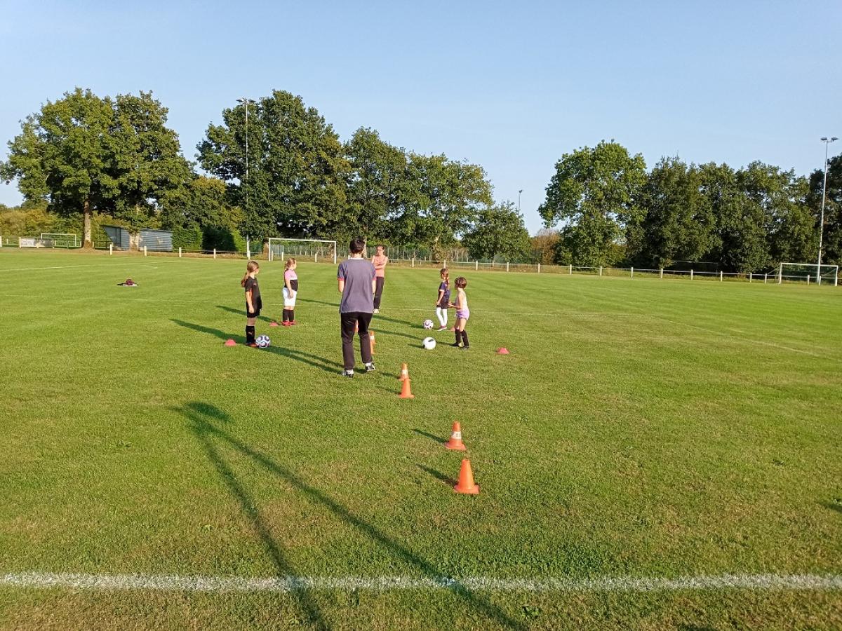 Ce soir se déroulait le premier entrainement de l'école de foot féminine avec comme entraineures Hélène et Piou